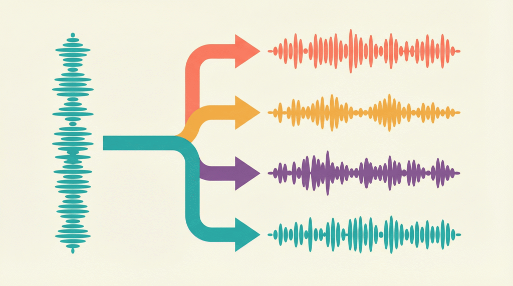 ステム分離は、1本のオーディオファイルをパート別に分けること。