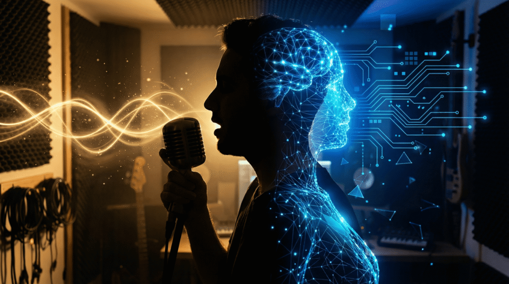 自分の声を10秒〜30秒アップロードするだけで、その声質を反映したAIボーカルが生成される。